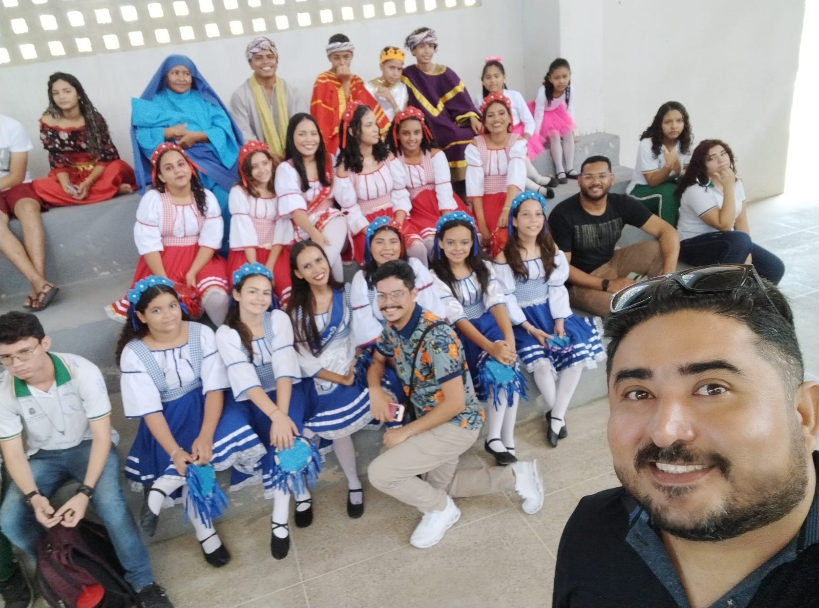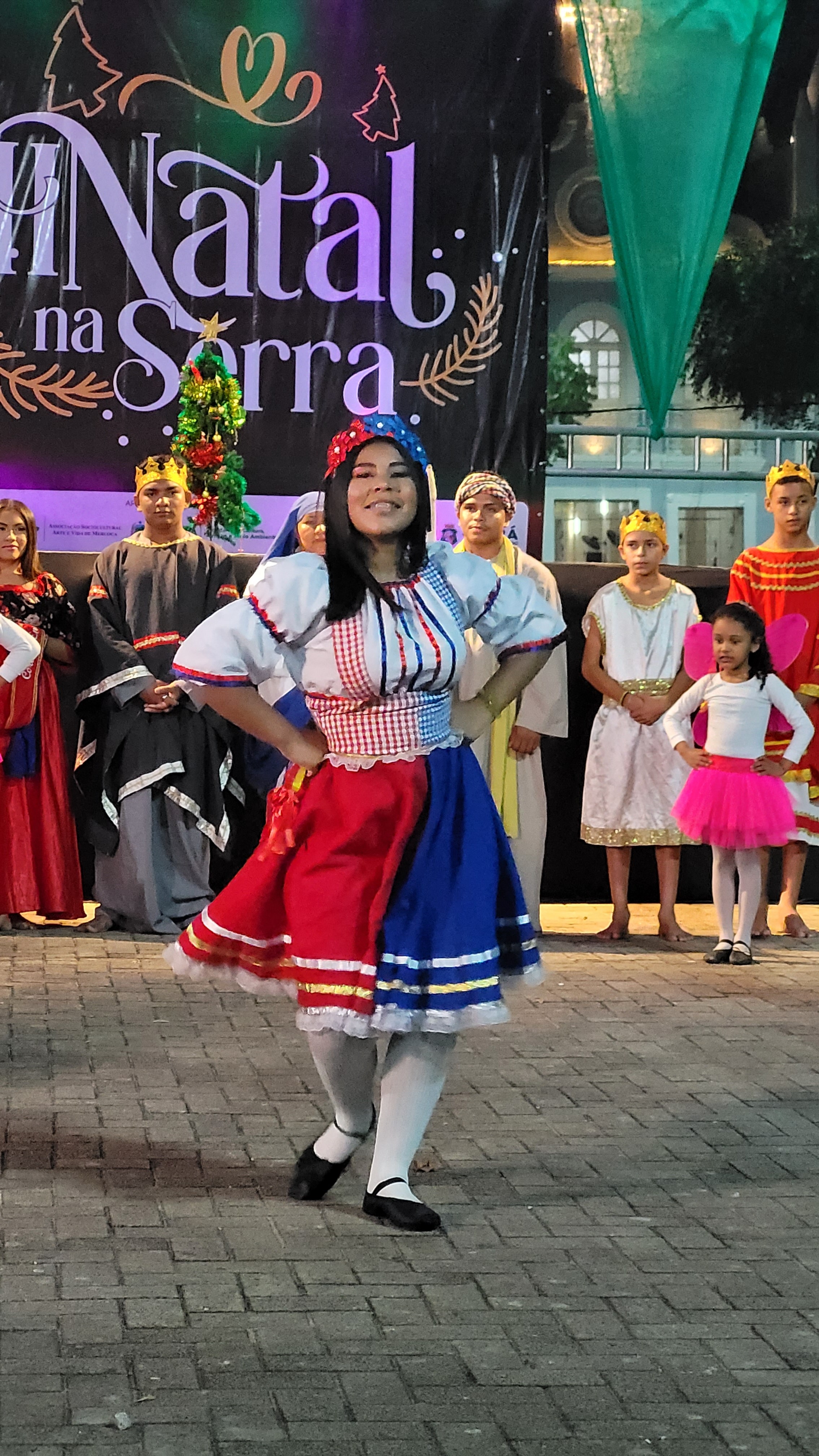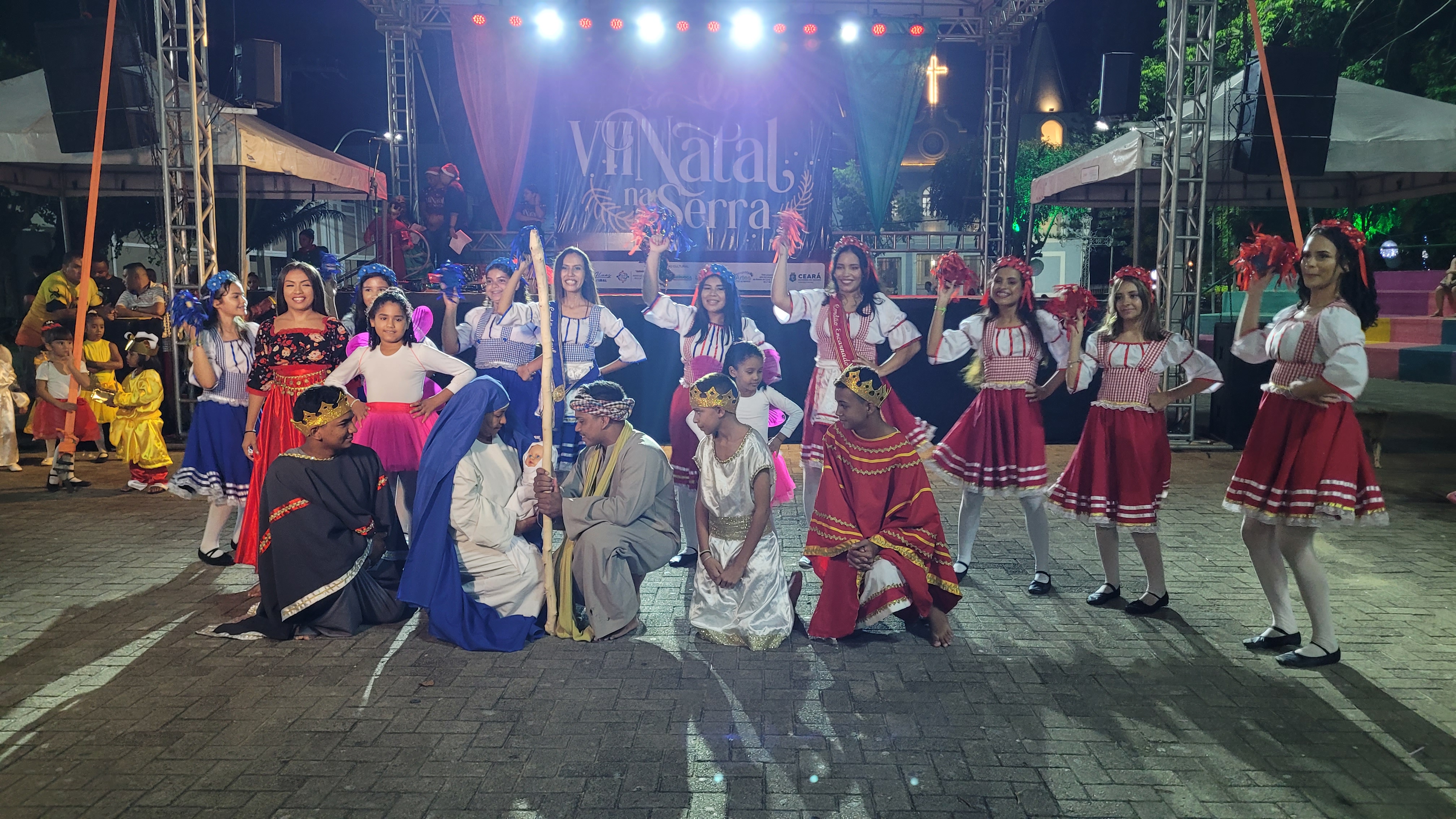 Aproximadamente 25 pessoas formam o nosso pastoril, entre dançarinas, atores e produção.