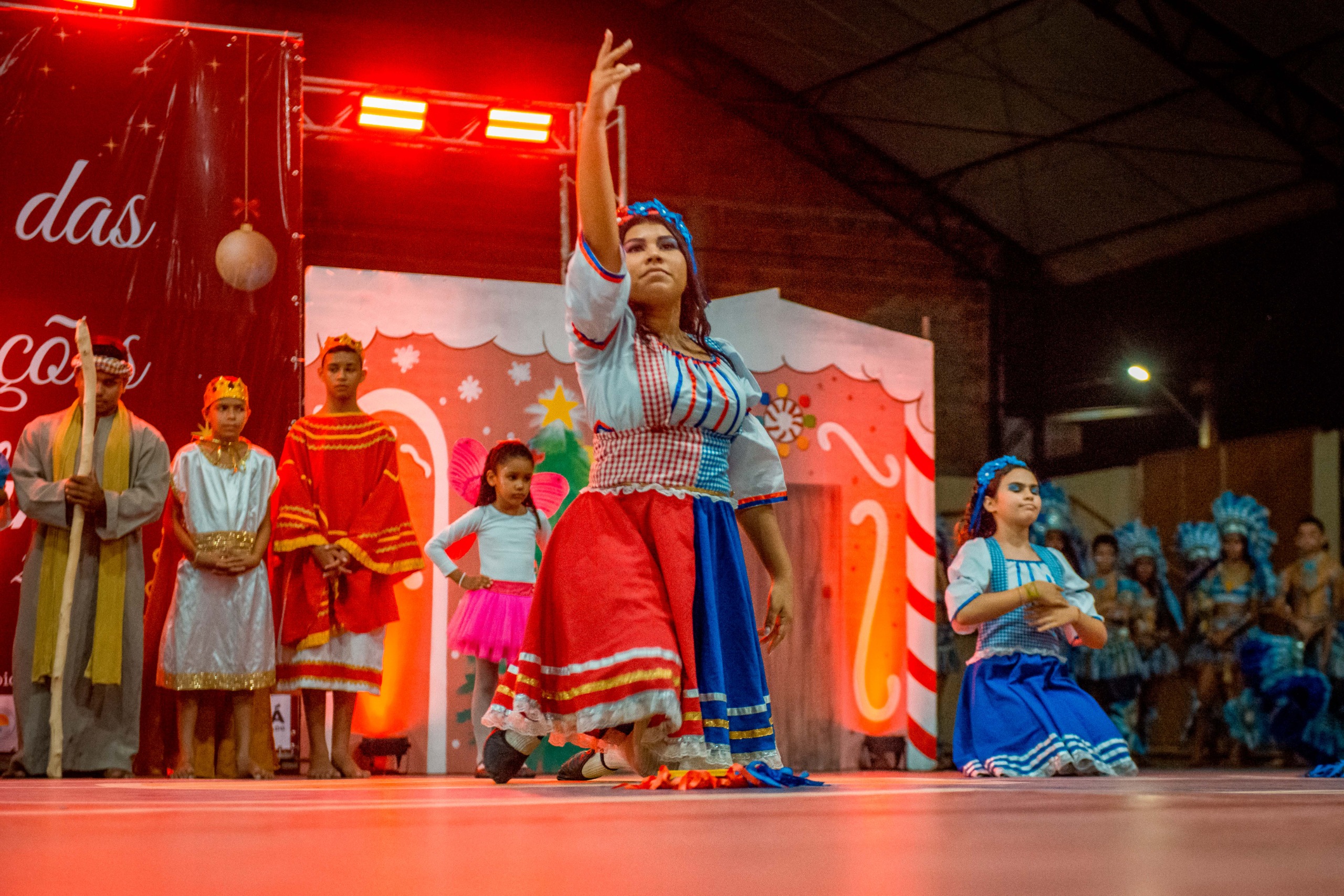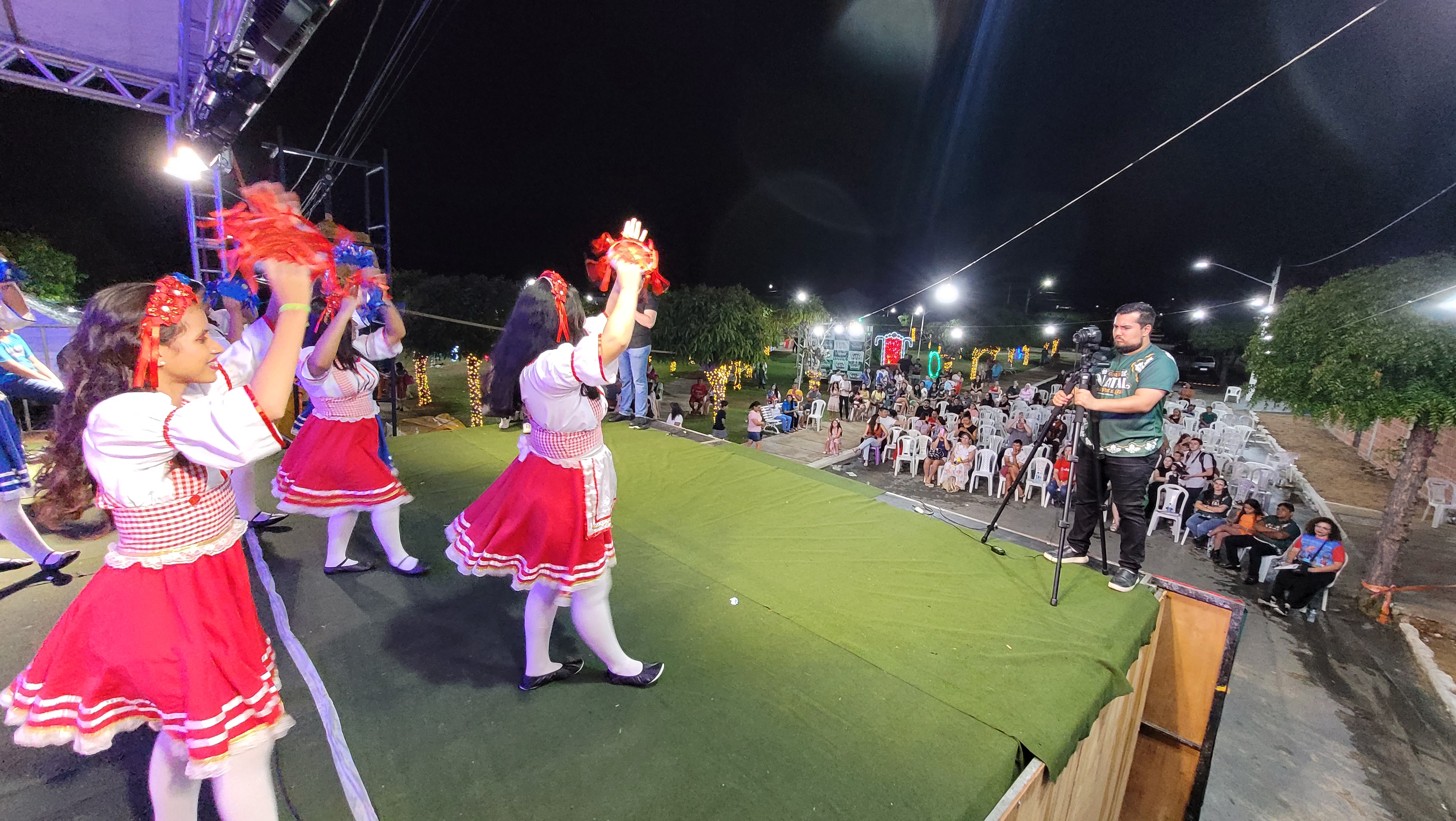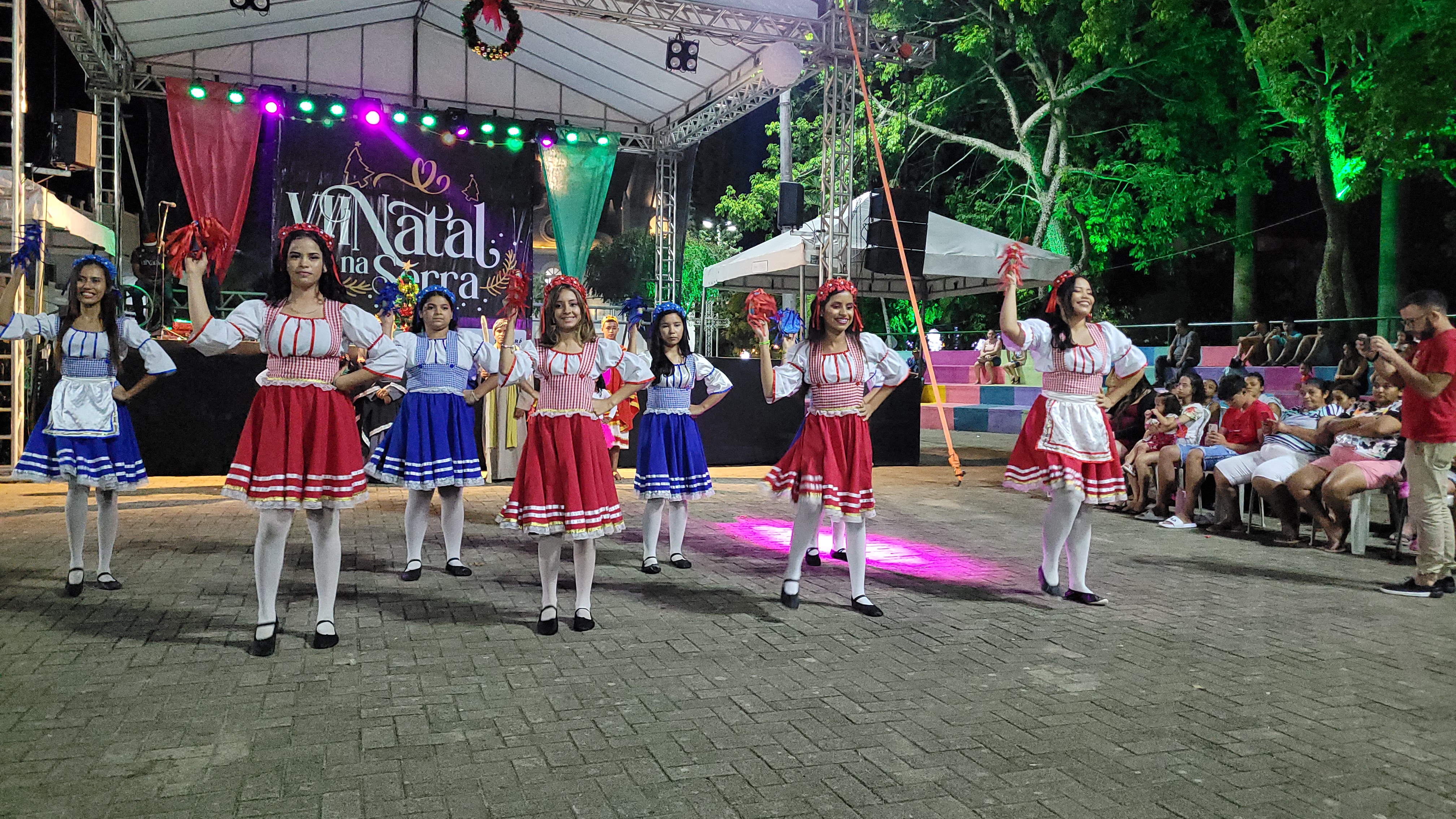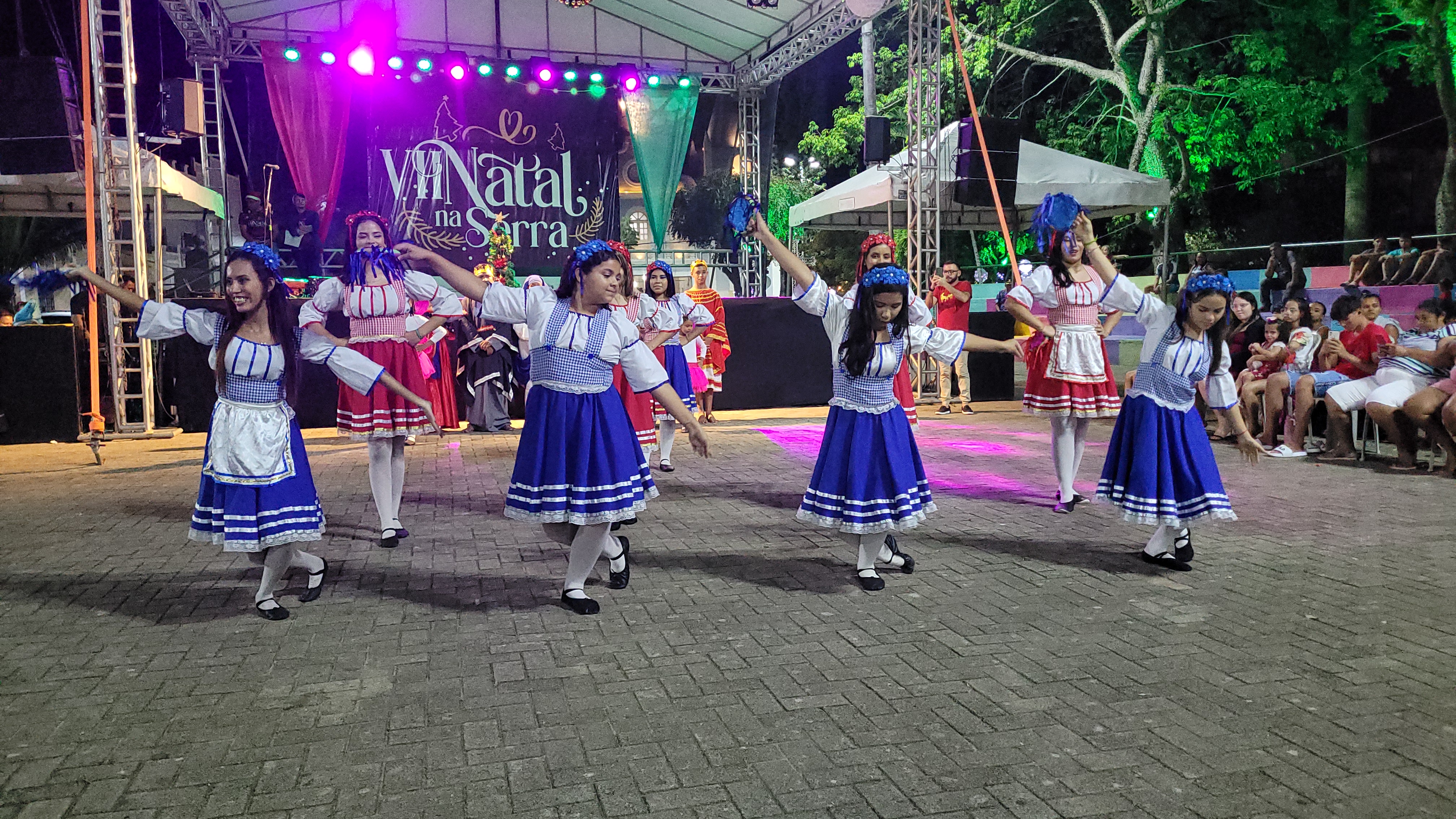 Aproximadamente 25 pessoas formam o nosso pastoril, entre dançarinas, atores e produção.