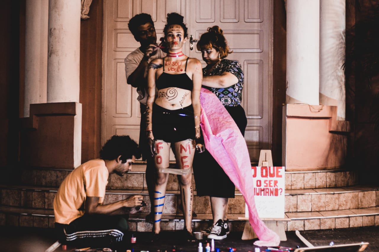 -Participou das performances: Mangue é mãe, cabeça, caixa dois, desculpa, cabeças de papelão, assédio em transportes públicos, intervenção visual com cartazes, corpos de papel machê, caixa;