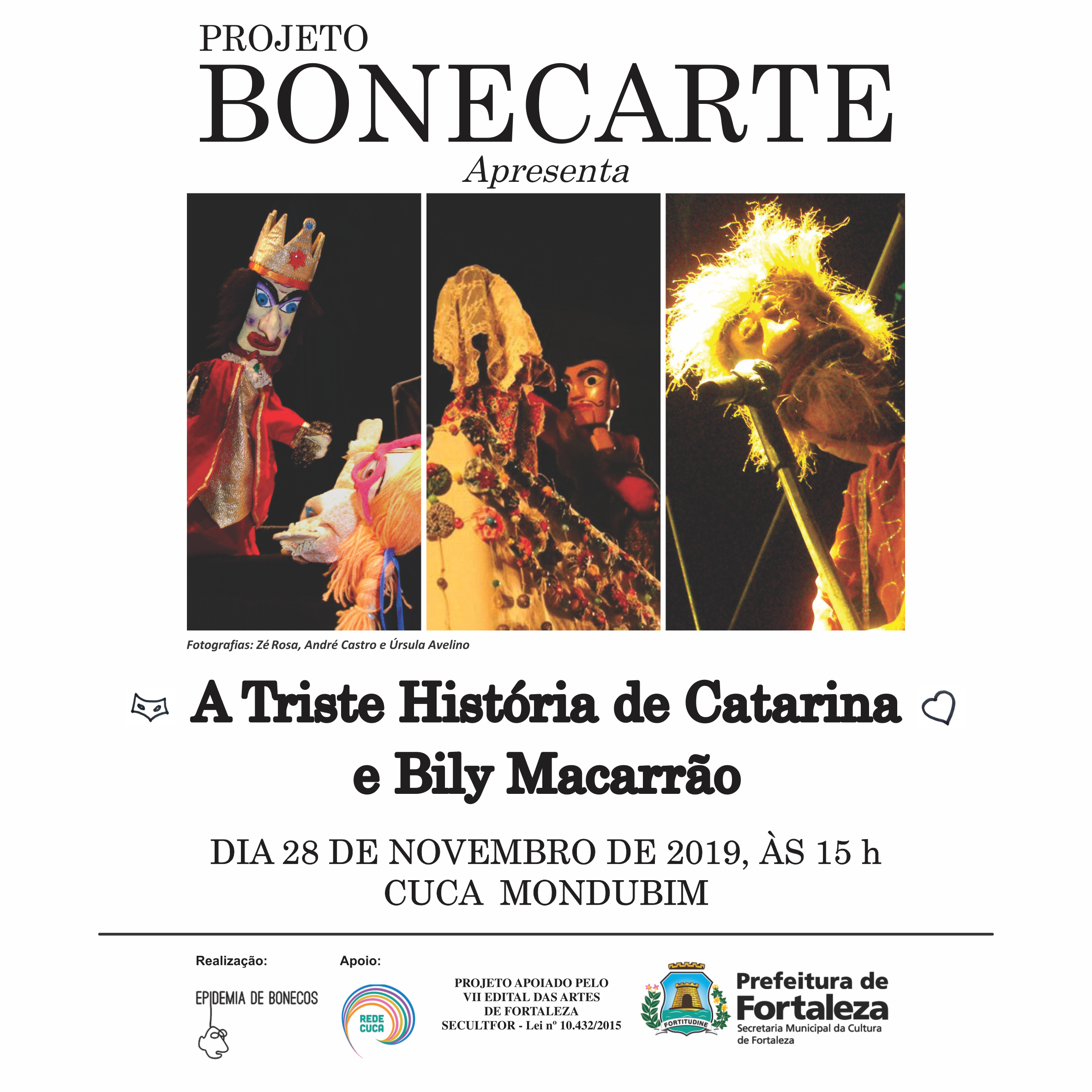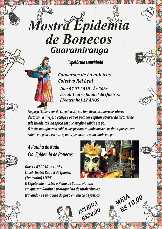 Mostra Epidemia de Bonecos – com as peças: O Romance de Creuza e Evangelista, A Saga de Jesus Cristo, A Triste Estória de Catarina e Bily Macarrão” e “Rainha de Nada”, Sesc Iracema - Fortaleza, Ceará
