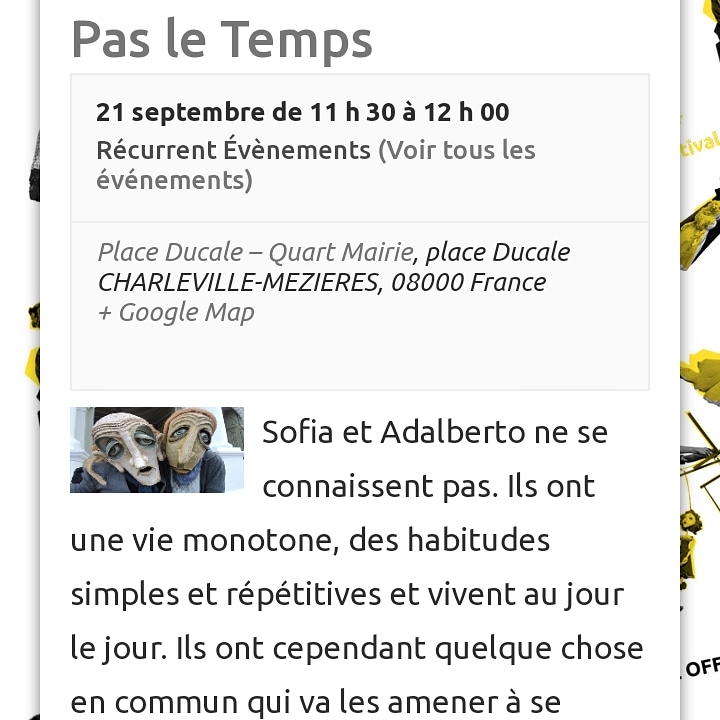 2019 Festival Mondial des Theatres de Marionnettes, com a peça “Pas de Temps” - Charleville- Mèziére, França.