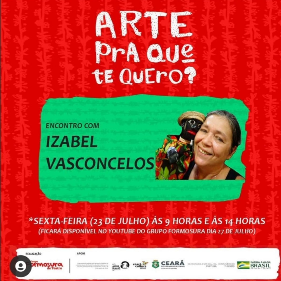 Izabel Vasconcelos é atriz e diretora do teatro de bonecos, é dramaturga, produtora e gestora cultural. Graduada em Artes Cênicas pelo Instituto Federal de Educação, Ciência e Tecnologia do Ceará - IFCE. Iniciou o trabalho com teatro em 1982, no Grupo de Teatro Raça, e no Teatro de Bonecos em 1985 com o Grupo Folguedo. É criadora, produtora e diretora da Companhia Epidemia de Bonecos em 1997. Trabalhou como gestora cultural de 1998 até 2020 na Secretaria de Cultura e Turismo de Maracanaú. Seus principais projetos como produtora atriz bonequeira e pesquisadora, nos últimos anos foram: O Cassimiro (2023), Caminhos do Cassimiro (2021), III Mostra Epidemia de Bonecos (2021), A Saga de Jesus Cristo (2022) Projeto Papiro (2021), Lives Epidemia.com (2020), O Auto do Boi Boca Rica (2021), Pas de Temps (2022), Festival Abril com Bonecos (2020), Bonecarte (2019).