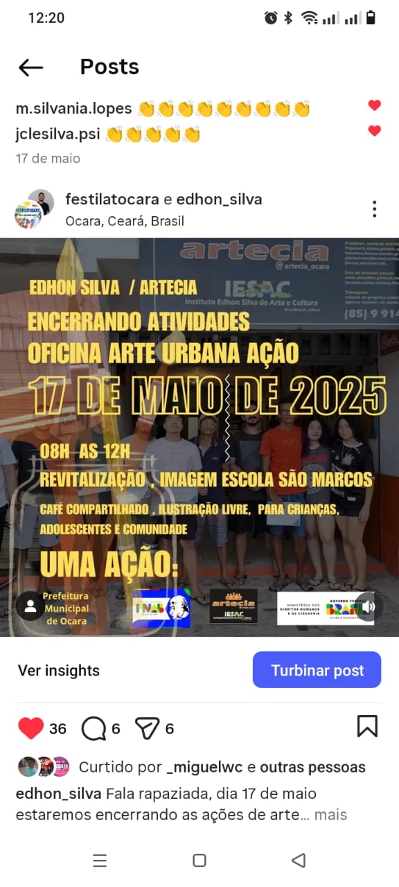 GRAFITTI PELA STDS OCARA-CE, XILOGRAVURA NA AGUA-GUARAMIRANGA, CURSO DE ARTE PARA CRIANÇAS PELA STDS OCARA, MÚSICA NO PROJETO MAIS EDUCAÇÃO EM CAPIVARA, LAGOA GRANDE -ARACOIABA -CE.